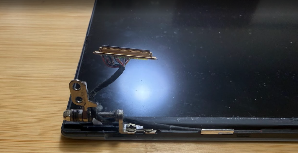 お客様も、カバンに入れて持ち運んでいたらいつの間にか線が入ってしまっていたとのこと。軽量PCのあるある事例かもしれません。